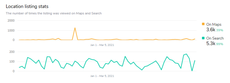 GMB also provides other data, like location listing stats, but these don’t need to be reported monthly. You can use them to justify focusing on a specific type of optimization.