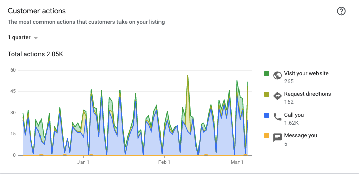 Below, we will go through the individual customer actions, as well as additional GMB data that provides insight into customer habits.