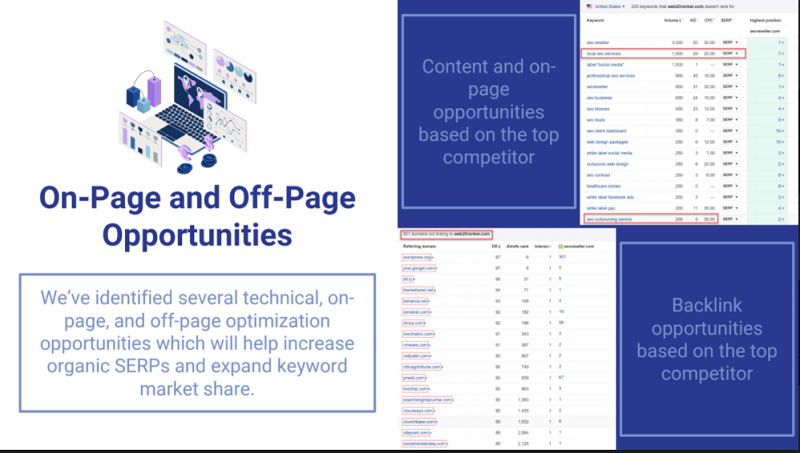 Our custom recommendations consist of an 11-page slide deck prepared for your specific campaign. Each recommendation is based on a thorough pre-sales SEO audit because we want you to be able to make data-backed decisions for your SEO needs.