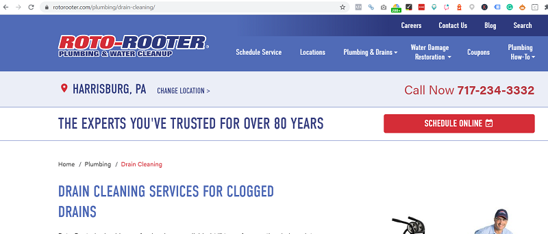 The location information in the banner is being displayed dynamically, but the page itself is not locally optimized. It is the same page that every drain cleaning link on every location or city page links to.