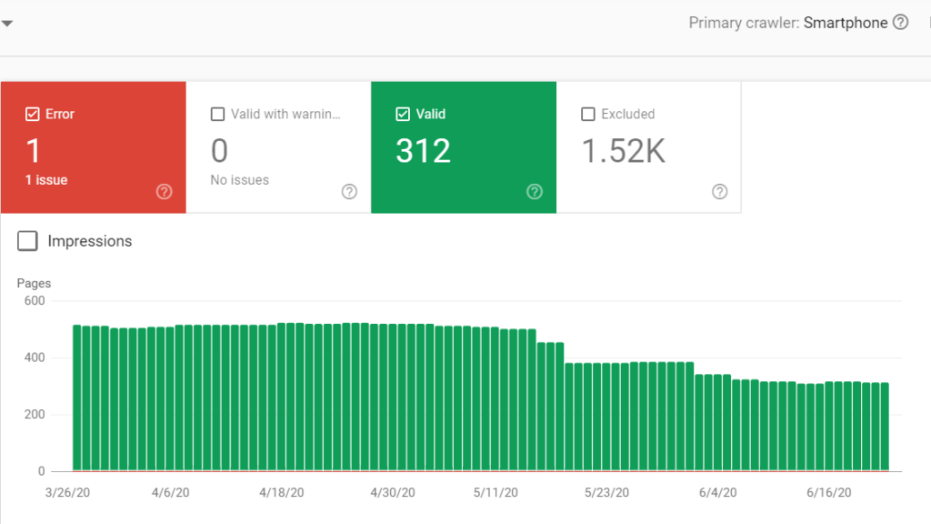 So if your number of mobile-first indexed pages is going down, that could spell trouble for your website. Oftentimes, it’s a symptom of a much bigger problem.
