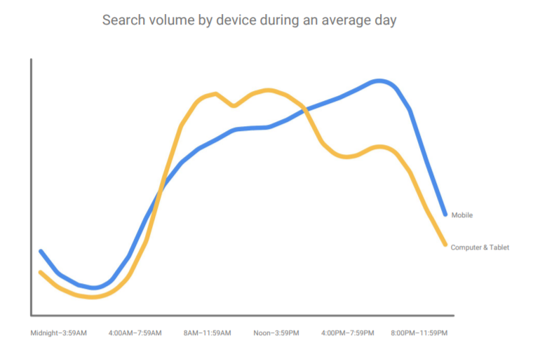 But that’s not the only interesting finding. Google also discovered that people use different devices depending on the time of day, and the type of device used can alter user intent. For example, someone searching on mobile is most likely looking for fast, convenient, and bite-sized information compared to a desktop user who is probably looking for more in-depth content.