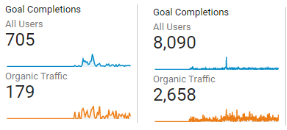Overall, we’re seeing strong goal increases across the board. Through the first quarter of the campaign we saw about 705 total monthly goal completions, with 179 of these being organic specific. In the final two months of our campaign we had 8090 total monthly goal completions, and 2658 of our total completed goals each month are coming through organics.