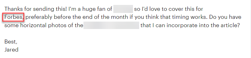 You can increase the relevance of your message and increase the likelihood of your message being heard, read, and acted upon by tailoring your messaging to a specific audience. Additionally, a targeted media outreach campaign can help you to build relationships with journalists, bloggers, and other influencers, which can be valuable in future outreach efforts. No matter how large of a media outlet you want to reach, you can do it with targeted media outreach – Just look at a response we got from Forbes.