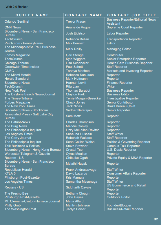 Get a 30+ page comprehensive targeted outreach report listing all of the contacts your press release pitch was sent to.